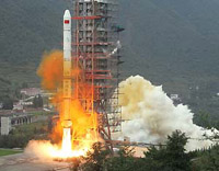 The 1.38-ton satellite, developed and manufactured by China, entered its orbit 24 minutes after takeoff. In the next few days, it will be positioned at 105 degrees east longitude over the equator with an observation scope covering one third of the earth's surface, according to scientists.