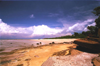 It is surrounded by a large area of coral reef and is inhabited by 15,000 people.