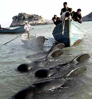 Whales Washed Ashore Helped to Return to the Ocean