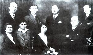 A group picture of Rosenfield's family. In front row from left to right: mother Jalina, brother Robert, sister Shabina, father Michael; in the back row from left to right: Jacob, brother Joseph, brother Jerom and brother Adolf.