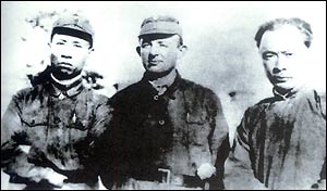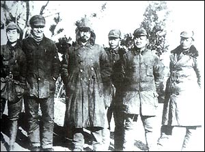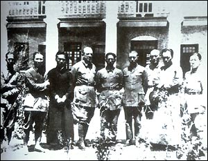 A group picture with the leaders of the New Fourth Army, Liu Shaoqi (L) and Chen Yi (R) in 1941.