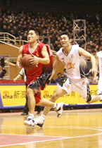 Coach and player Hu Weidong from the South was the last star to appear on the court, but he sent the audiences to ovation with three 3-pointers to close the game at 60-56 in the third quarter.