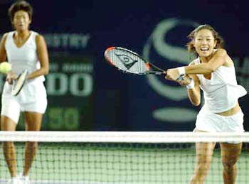 Li and Sun smashed their combined counterparts, American Jennifer Hopkins and Janet Lee of Chinese Taipei 6-2 6-2 in just one hour.