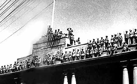Eighth Route Army soldiers celebrating victory on the Great Wall.