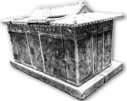 Its stone entrance and a stone sarcophagus (containing two intact skeletons), in the shape of a traditional chamber featuring a hip-and-gable roof, had survived the passage of centuries.