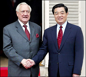 The overall partnership relations between China and the European Union continued to develop smoothly in 2003. China and the EU issued policy documents on bilateral relations to clarify and solidify deepening Sino-EU relations. In October 2003, the sixth Sino-EU Summit was held in Beijing. The subsequent Joint Press Statement of the Sixth China-EU Summit stated that both the Galileo Satellite Navigation Cooperation Agreement and the Memorandum of Understanding on Approved Destination Status are significant milestones in expanding bilateral relations. The leaders of China, Germany, and the United Kingdom met frequently: In June, Chinese President Hu Jintao met French President Chirac while attending the Informal South-North Leaders Dialogue Meeting; French Prime Minister Raffarin, British Prime Minister Blair, German President Johannes Rau and German Chancellor Schroeder each paid a visit to China in April, July, September and December respectively. The year 2004 marks the 40th anniversary of the establishment of diplomatic relations between China and France. Chinese President Hu Jintao paid a state visit to France during the Chinese New Year (Jan.26-29) to help launch the activities of the cultural year celebrated by the two countries.