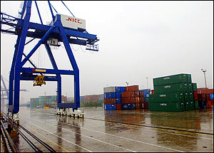 China's coastal harbors enable the transportation of coal, containers, iron ore and grain and roll-on-roll-off ships, as well as provide deep-water access to the sea. In the construction of her harbors, China especially has strengthened the container transport system. Work in this regard has been concentrated on the construction of a group of deep-water container wharves at Dalian, Tianjin, Qingdao, Shanghai, Ningbo, Xiamen and Shenzhen, laying the basis for the shaping of China's container hubs. The construction of the coal transport system has been further strengthened. A number of coal transport wharves have been constructed. In addition, wharves for importing crude oil and iron ore have been reconstructed or expanded. By the end of 2003, the main coastal harbors had close to 2,400 berths, including some 540 10,000-ton-class berths, with a handling capacity of 48 million containers, ranking No. one in the world. The annual volume of freight traffic of some large harbors has exceeded 100 million tons; and Shanghai, Shenzhen, Qingdao, Tianjin, Guangzhou, Xiamen, Ningbo and Dalian harbors have been included among the 50 top container harbors in the world.