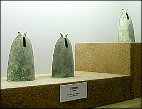 From the very beginning the bronze bells in China were endowed with strong emotional coloring and cultural connotations. In his Explanation and Study of Principles of Composition of Characters, Xu Shen of the Eastern Han Dynasty said, "The zhong (bell) is the sound of the Autumn Equinox. All crops have been zhong (cultivated)." In Chinese, zhong (bell) and zhong (cultivate) are pronounced similarly, but in different tones. Harvests were the result of toil in our ancient agricultural country with its yellow soil. The stroke of the bell at a feast conveyed feelings of joy for the bumper harvest as well as the emotion of a man with a heavy heart. A Chinese bell produces a deep, cohesive sound, while a Western bell emits a loud, extrovert sound, displaying the differences in their national character probably caused by the environment. The Tone Monitor, the Ministry of Rites, the Ritual of Zhou summarizes the shapes and sounds of bells, saying: "If the upper part of a bell is bigger than its lower part, the bell produces a muffled sound; if a bell is vertical, it makes a slow sound; if the mouth of a bell is wide open, the sound of the bell is unbridled." The Artificers' Record, the Ritual of Zhou says, "A big and short bell produces a quick sound that can be heard within a short distance; a small and long bell makes a mild sound that can be heard far away." The bigness or smallness of a bell refers to its rim diameter. A Chinese bell produces a slow sound that can be heard far away. This was a choice made carefully and inevitably by our ancients in the light of the environmental and social factors.