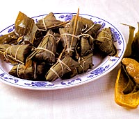 Zongzi is an essential food of the Dragon Boat Festival. It is said that people ate them in the Spring and Autumn Period (770-476 BC). In early times, it was only glutinous rice dumplings wrapped in reed or other plant leaves and tied with colored thread, but now the fillings are more diversified, including jujube and bean paste, fresh meat, and ham and egg yolk. If time permits, people will soak glutinous rice, wash reed leaves and wrap up zongzi themselves. Otherwise, they will go to shops to buy whatever stuff they want. The custom of eating zongzi is now popular in North and South Korea, Japan and Southeast Asian nations.