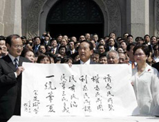 Soong shows his inscription for the Dr Sun Yat-sen's Mausoleum.