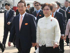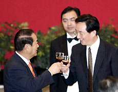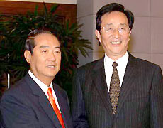 Chen Liangyu (R.), secretary of the Communist Party of China (CPC) Shanghai Municipal Committee, meets Soong.