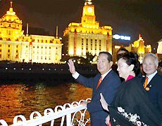 Soong and his wife take a night tour of the Huangpu River in Shanghai.
