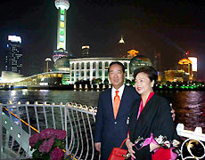 Soong and his wife Viola Chan take a night tour of the Huangpu River in Shanghai.