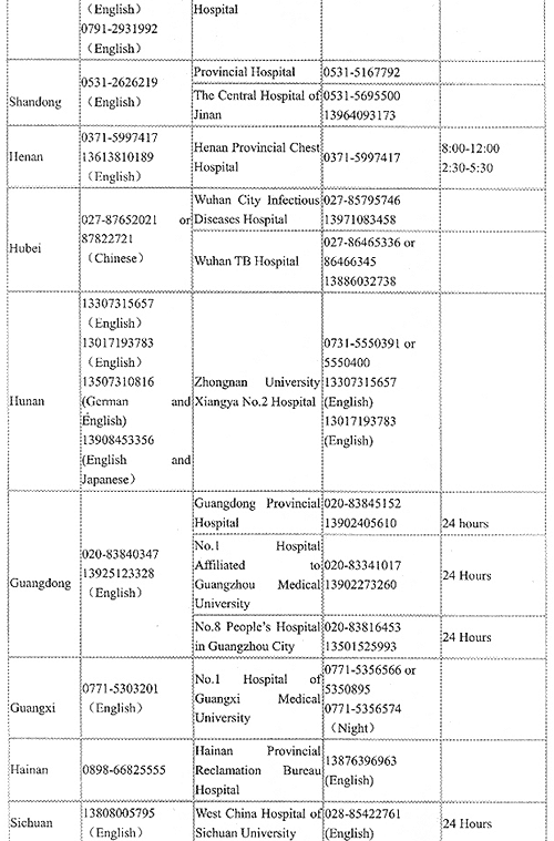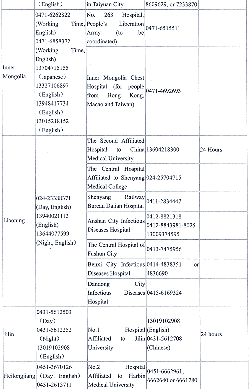 Designated Hospitals in Provinces, Autonomous Regions, Municipalities