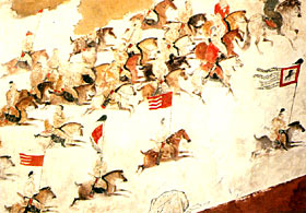 Mural of procession at attendant tombs of Princess Yong Tai, Prince Yi De and Prince Zhang Huai at Qianling