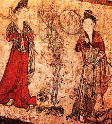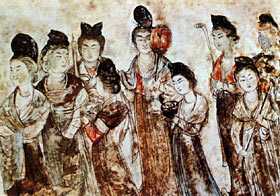 Frescoes adorned the walls and tops of the passage, the archway, the corridor and chambers. Some were "Painting of Maidservants," reflecting the parasitic imperial life; some were architectural designs, reflecting Tang Dynasty architecture; others are "Painting of Polo Game" and ''Paintings of Envoy and Guests," depicting cultural exchanges and the friendly relationships between China and the world. Rich and extensive in themes, well composed and skillfully executed, these frescoes illustrate the high level of Tang paintings and add a new chapter to China's ancient painting history.