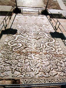 Stone ramp caved with dragons sporting in clouds in bas-relief at the center of the staircase leading to the Hall of Prominent Favor at Changling