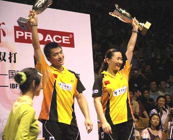 China's Chen Qiqiu and Zhao Tingting lost the mixed doubles final against Olympic bronze medallists Jens Eriksen and Mette Schjoldager of Denmark . The Chinese pair threw away an 11-6 lead in the first set before coming back to take the second. However, they faded in the final set to lose 15-8.