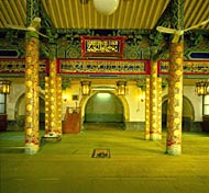 In front of the tower are a memorial archway and a screen wall covered with carved murals, which together form the main entrance of the mosque. Beyond it is the main hall where the congregation comes to pray. According to Islamic tradition, a Muslim in prayer must kneel down and prostrate himself in the direction of Mecca (in Beijing, to the west), which explains why the fa?ade of the main hall has an eastern aspect.