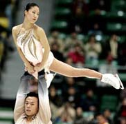 Shen/Zhao, who started their new season with a victory in the Skate Canada International last month, sent their home fans into ecstasy with a smooth program which includes their trademark high-flying twist and whirling lift.