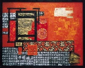 Numerous products of traditional Chinese culture, such as calligraphy, seals, silk, ancient coins, and ancient books, either in the original or their rubbings, have been extensively used by Lao Dao, combined with oils, to create distinctive works of irresistible fascination. Each of the overlapping and mottled pieces tell of the turbulent past, and ingenious combinations represent the excellence of Chinese culture, which, in turn, endows his works of art with its essence.