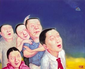Yin Kun, a talented and sensitive young artist, has a deep interest in everyday life experience, and attitudes towards reality. His works depict social indifference towards some typical phenomena, through which an in-depth meaning is revealed -- the conundrum of money. His frames function as a stage for his carefully designed characters and props on which to manifest behavioral art. Human figures are delineated in rose-red, while a gray background represents a false living space. Poor Children reflects his fervent wish that the false material world might change when innocent children open their eyes, as well as his yearning to save and protect children.