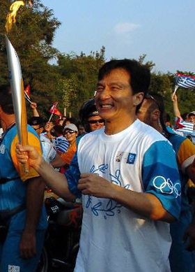 Chan, who has won worldwide acclaim thanks to his acrobatic film roles, was forced to stop his run after no more than 100 meters amid fears of injury caused by the crazy crowds. He has been supposed to carry the flame for 400 meters.