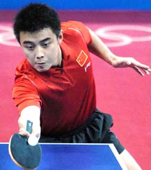 The Chinese paddlers had grabbed three golds from women's doubles, men's doubles and women's singles earlier in Athens.