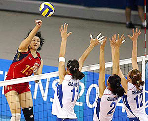 China got off to the better start, opening a 8-5 lead with Zhang Ping particularly effective on attack. Feng Kun and Liu Yanan also combined superbly for the China with two successful blocks.