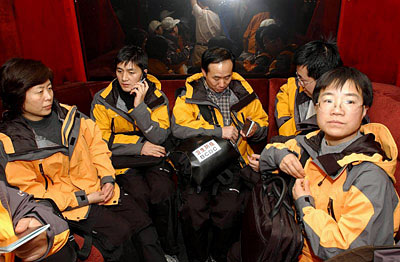 Members of the Chinese medical team take a short break on their arrival at the airport in Colombo, capital of Sri Lanka, before they head for Galle city, Jan. 3, 2005.
