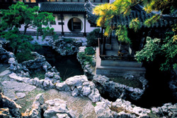 The mountain villa covers an area of 0.2 hectare, with houses built in front of a garden. Rockeries and the pond in which they are displayed form the centerpiece of the entire garden. To the west of the pond there are the side chamber and a corridor. The rockwork was created in 1807 by Ge Yuliang, an expert of artificial mountains. It is the most outstanding agglomeration of rocks among all the gardens in Suzhou.