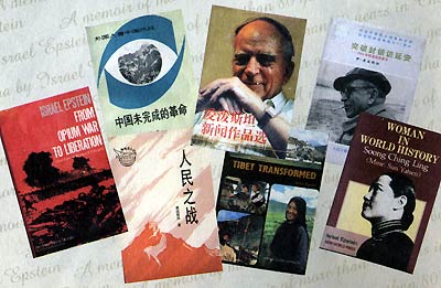 Veteran journalist and writer Israel Epstein died in Beijing May 26, 2005 at the age of 90. As an outstanding international journalist, in 1939 he published The People's War, giving a truthful account of the sacrifice, suffering and bravery of the Chinese in the face of Japanese aggression to a world still ignorant of it. The photo shows some of his works. (Xinhua Photo)