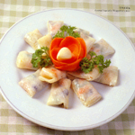 2. Quickly boil the lettuce. Take it out and cut into rectangles 8 cm (3 inches) long and 5 cm (2 inches) wide.