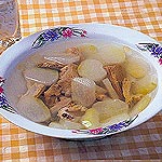Ingredients: 250 grams (5/9 lb.) pork ribs 250 grams (5/9 lb.) wax gourd 20 grams (4 tsp.)cookig wine 5 grams (5/6 tsp.) salt 2 grams (1/2 tsp) MSG