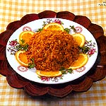 2. Heat the oil in a wok over strong fire to 180-200?C (355-390?F) and carefully pour the whipped eggs into the oil to allow the egg paste to drip contimuously until all of it is in the wok. While pouring with one hand, use the other to hold a ladle to keep stirring the egg paste in the oil so that the paste will take the form of a thread. When it rises in the oil and turns yellow, take it out and drain off the oil. Place the fluffy egg on a paper napkin, press out the oil, loosen it with your hand and it is ready to serve.