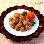 4. Heat the oil to 110-135?C (230-275?F) and deep-fry the shrimp balls until they are golden in color. Take out and put on a serving plate.