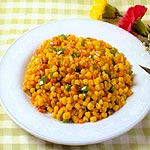 Ingredients: 50 grams (0.11 lb) shelle dpine nuts 350 grams (0.77 lb) sweet corn grains 50 grams (0.11 lb) carrots 150 grams (0.33 lb) cucumbers 1 gram (1/6 tsp) salt 1 gram (1/4 tsp) MSG 2 grams (1/2 tsp) sugar 10 grams (2 tsp) cooking wine 300 grams (3/5 cup) salad oil (only 1/5 to be consumed) 15 grams (1 tbsp) mixture of cornstarch and water 20 grams (1 1/2 tbsp) water