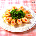 1. Whip the eggs in a bowl. Heat the wok over low fire, add oil, pour in the whipped eggs and quickly rotate the wok to make the eggs coat the inside of the wok. The eggs will later be used as the wrapping. Add salt, MSG, scallions and ginger into the ground meat, and stir well until the mixture becomes sticky.