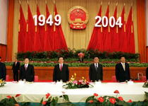 Present at the reception were Wu Bangguo, chairman of the Standing Committee of the National People's Congress, Jia Qinglin, chairman of the National Committee of the Chinese People's Political Consultative Conference, and Vice Premier Huang Ju. They are also members of the Standing Committee of the Political Bureau of the CPC Central Committee.