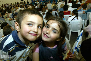 Emerging from the plane, the immigrants sang "Heveinu Shalom Aleichem," or "we bring peace to you," a traditional Hebrew song of greeting. A heavyset man with a beard, wearing a white shirt and skullcap, danced, his arms above his head.