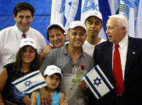 Just 10 days after Israeli Prime Minister Ariel Sharon enraged French leaders by urging France's Jews to leave for Israel, a group of 200 French Jews arrived to start a new life in the Jewish state, with Sharon at the airport to greet them.