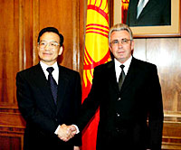 Wen suggested that the two countries work harder to create favorable conditions for cooperation between the two countries' enterprises, particularly large-scale joint ventures. China and Kyrgyzstan should expand cooperation in the fields of energy, mineral exploitation and electric communications, and enhance border trade, Wen said.