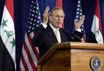 Rumsfeld admitted the disadvantages of having a prolonged foreign military presence in Iraq and hinted that the training of Iraqi security forces has become a top priority of the Pentagon.