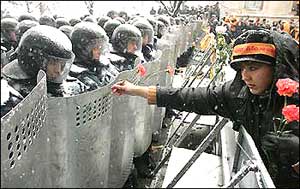 EU foreign policy chief Javier Solana also warned that Ukraine was at a crossroads and could slide into violence.