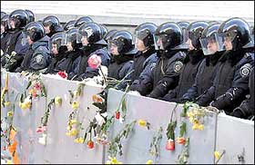 Kiev's Independence Square and its main roads were again paralyzed by the mass protests as people of all ages and from different regions of Ukraine converged on the center. Some waved the national blue-and-yellow flag, but the dominant color was orange -- Yushchenko's campaign colors.