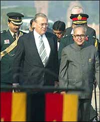 This was Rumsfeld's first visit to New Delhi after the change of the government in India and the first major visit by a top US official after George Bush's reelection last month. Rumsfeld last visited India in June 2002 at the height of tensions with Pakistan.