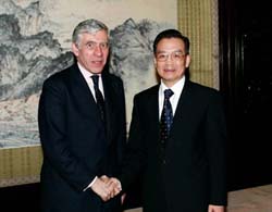 The two countries have kept close contact on international and regional issues, Straw said, adding that Britain is willing to expand cooperation with China in all fields including political and economic areas.
