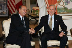 Monday is the first day of Bush's stay in Brussels. He met Belgian Prime Minister Guy Verhofstadt in the morning and will have dinner later with French President Jacques Chirac.