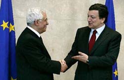 In earlier talks with EU foreign policy chief Javier Solana, Abbas said he wanted Palestinian statehood "as soon as possible." Solana reaffirmed the EU commitment.
