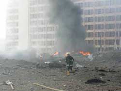 Shooting erupted for several minutes before and after the blast, which sent thick black smoke into the sky and destroyed 20 cars.
